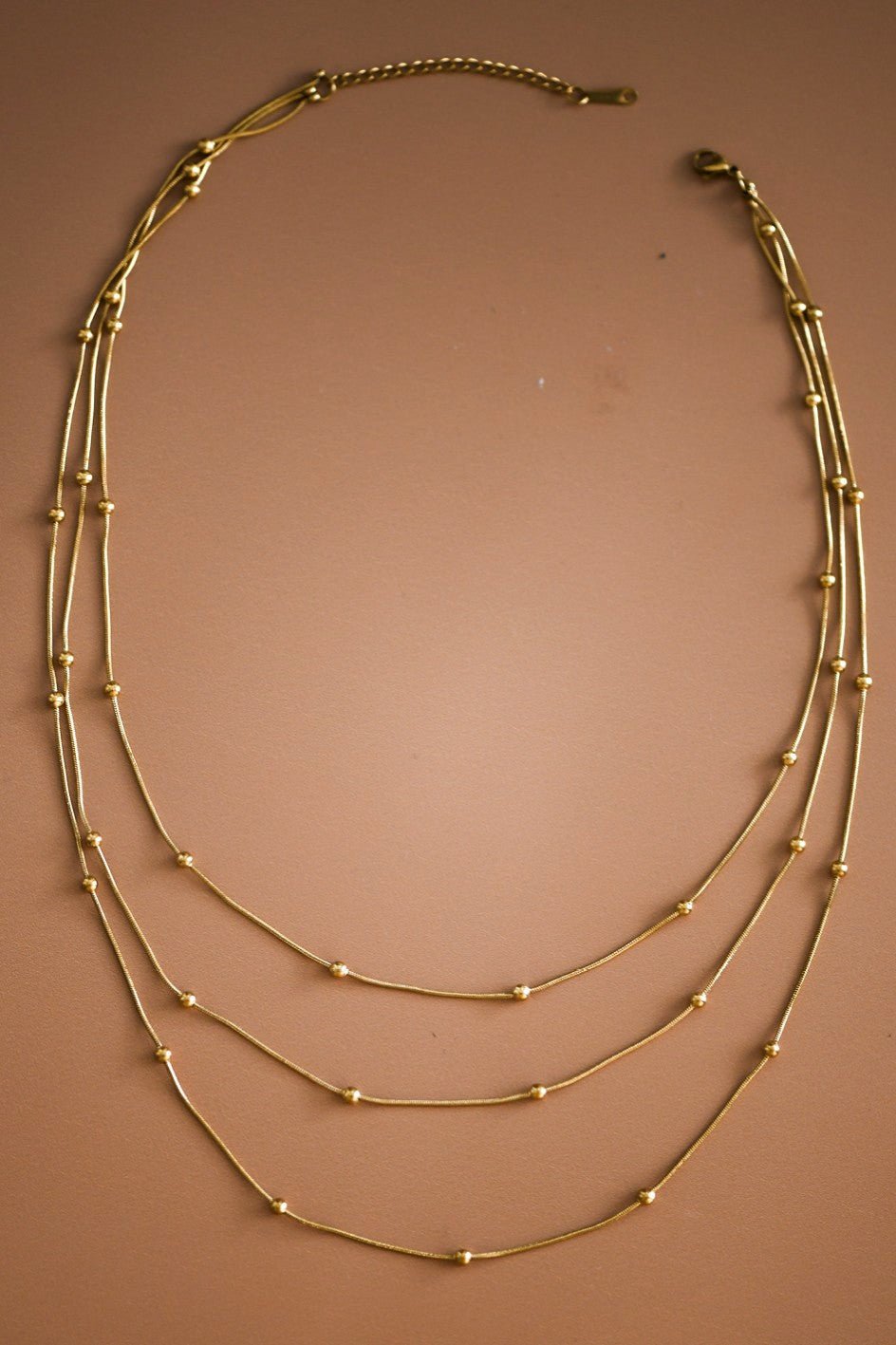 18K Gold Plated Stainless Steel Layered Ball Chain Necklace.