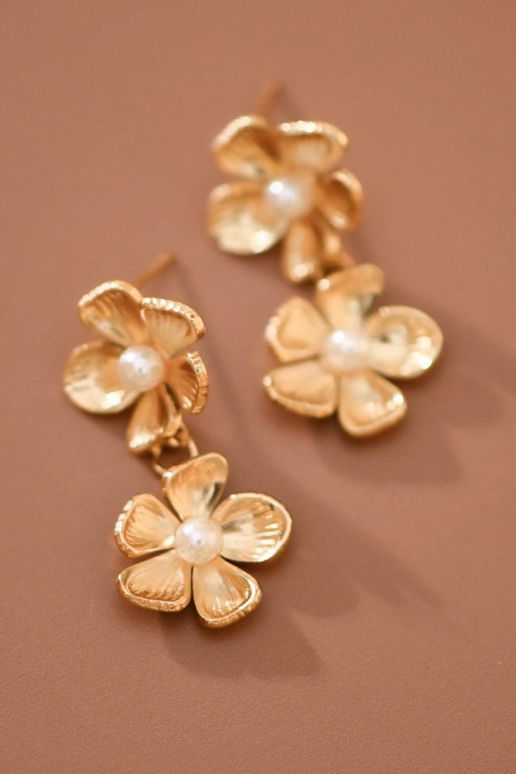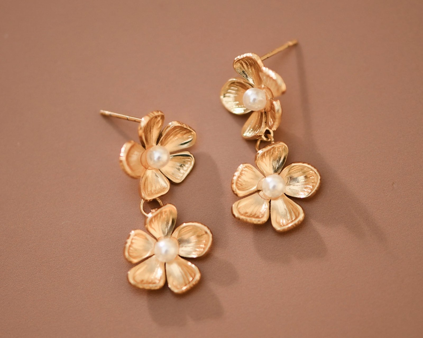 Pearl Floral Earrings | Gold Plated Drop Earrings | Stainless Steel Earrings | Floral Pearl Earrings | Waterproof & Sweatproof Jewelry | Metal Earrings | Tarnish Resistant Earrings | Everyday Jewelry