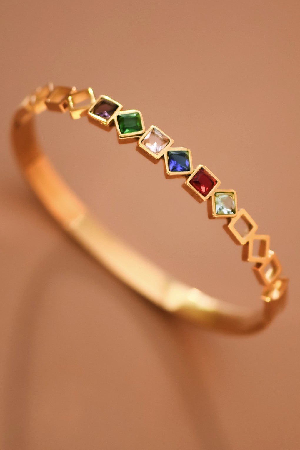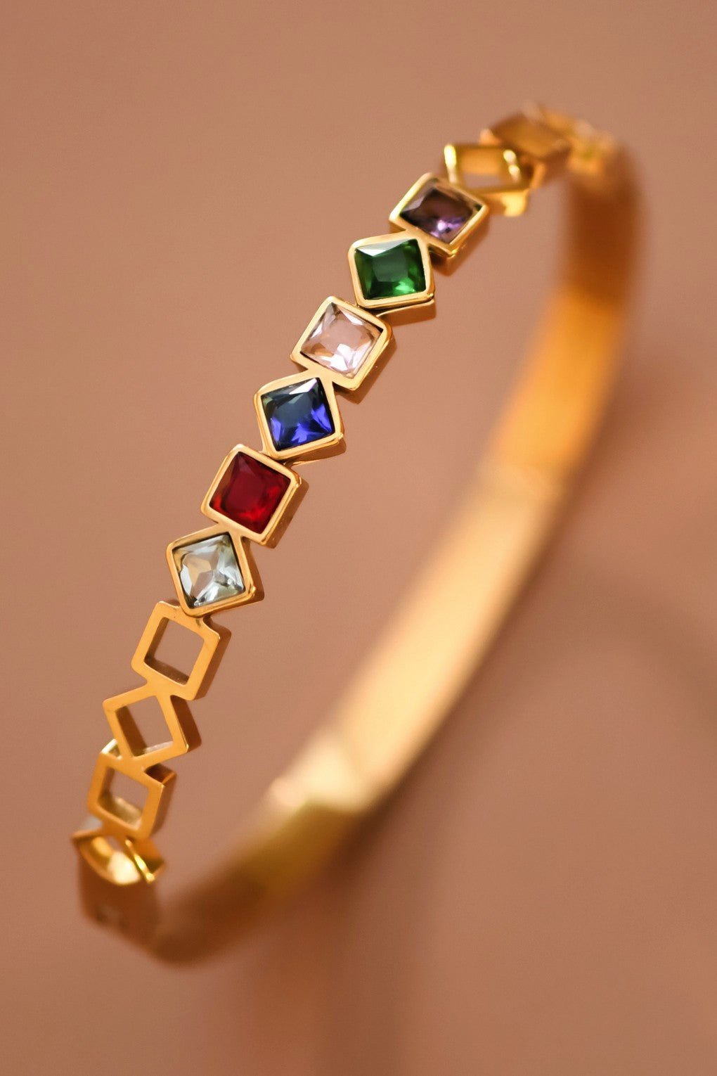 Hinged Bangle Bracelet with Zircon Crystals | Stainless Steel Bracelet | Real Gold Dipped Bracelet | Real Gold Plated Bracelet | Waterproof & Sweatproof Bracelet | Simple Gold Bracelet