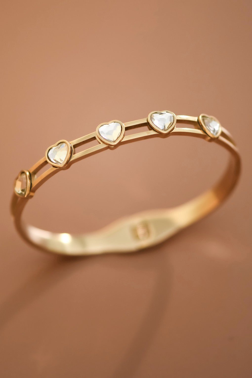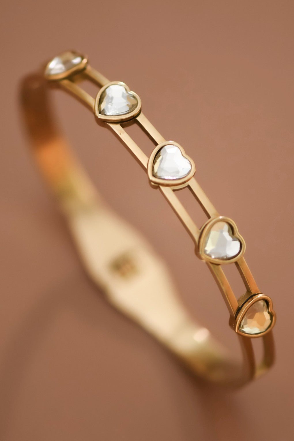 18K gold plated stainless steel hinged bangle bracelet.