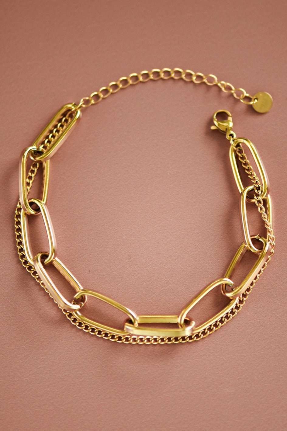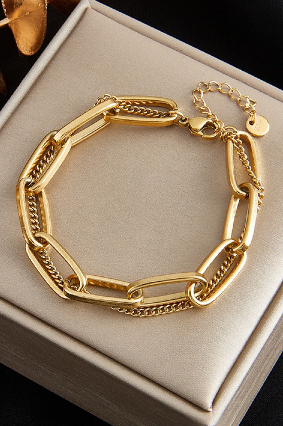 Elevate your style with this 18K gold plated stainless steel link chain bracelet.
