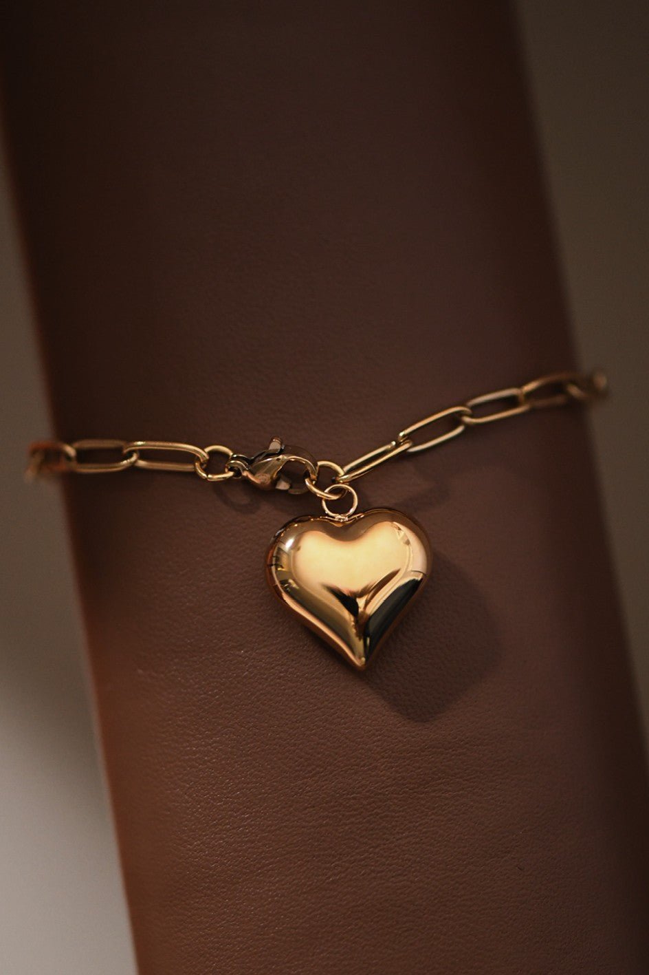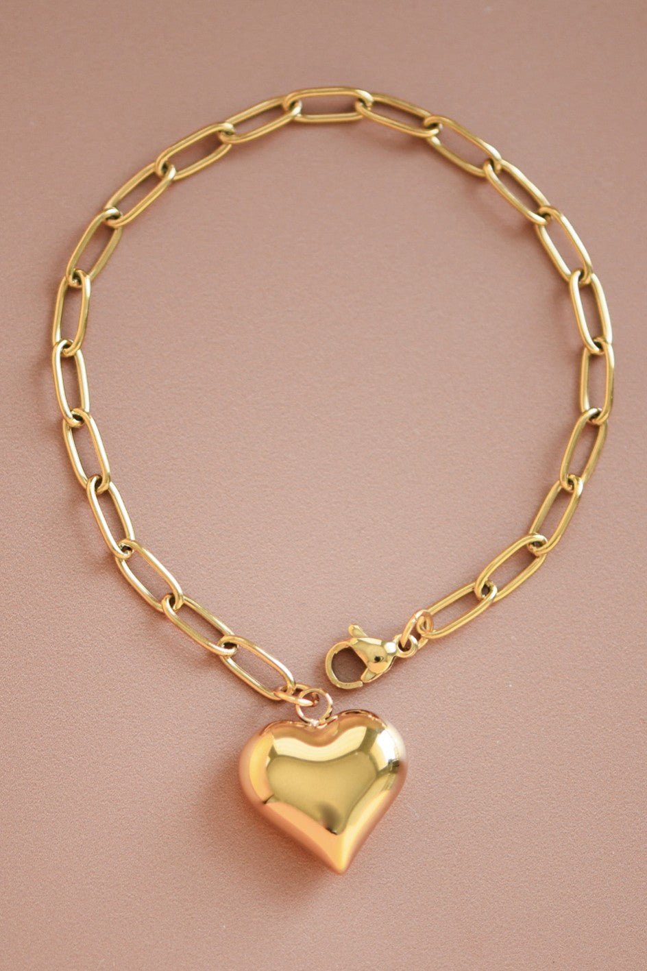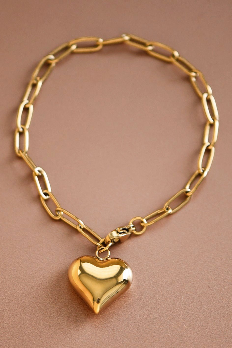 Paperclip Chain Bracelet | Chain Link Bracelet | Heart Charm Bracelet | Real Gold Dipped Bracelet | Gold Plated Bracelet | Waterproof & Sweatproof Bracelet | Layering Bracelet | Simple Gold Bracelet