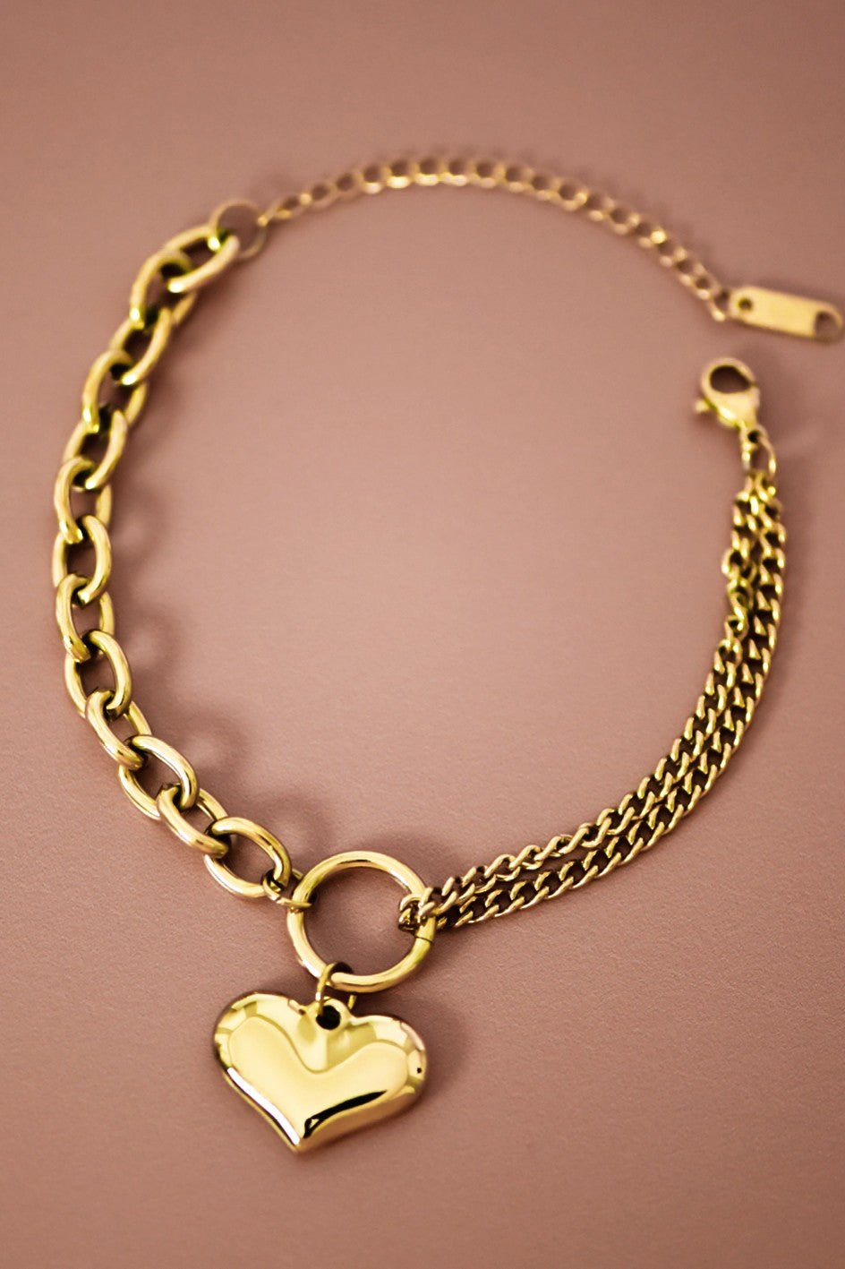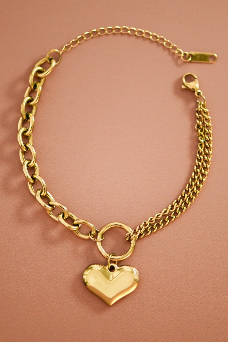 Heart Charm Bracelet | Oval Chain Link Bracelet | Real Gold Dipped Bracelet | Gold Plated Bracelet | Waterproof & Sweatproof Bracelet | Layering Bracelet | Simple Gold Chain Bracelet