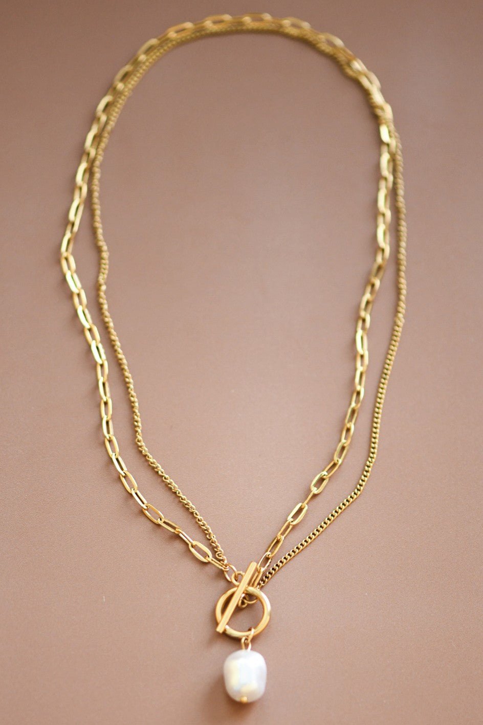 18K Gold Plated Stainless Steel Chain Multi Layer Necklace. Approx. 17.5″ L. Toggle clasp.