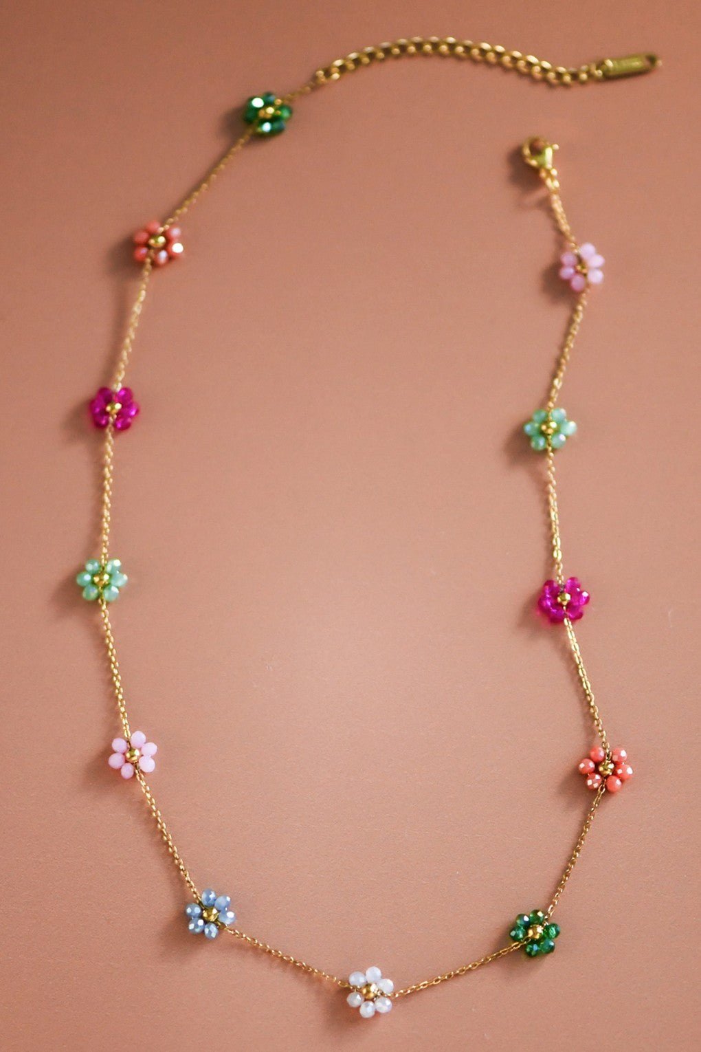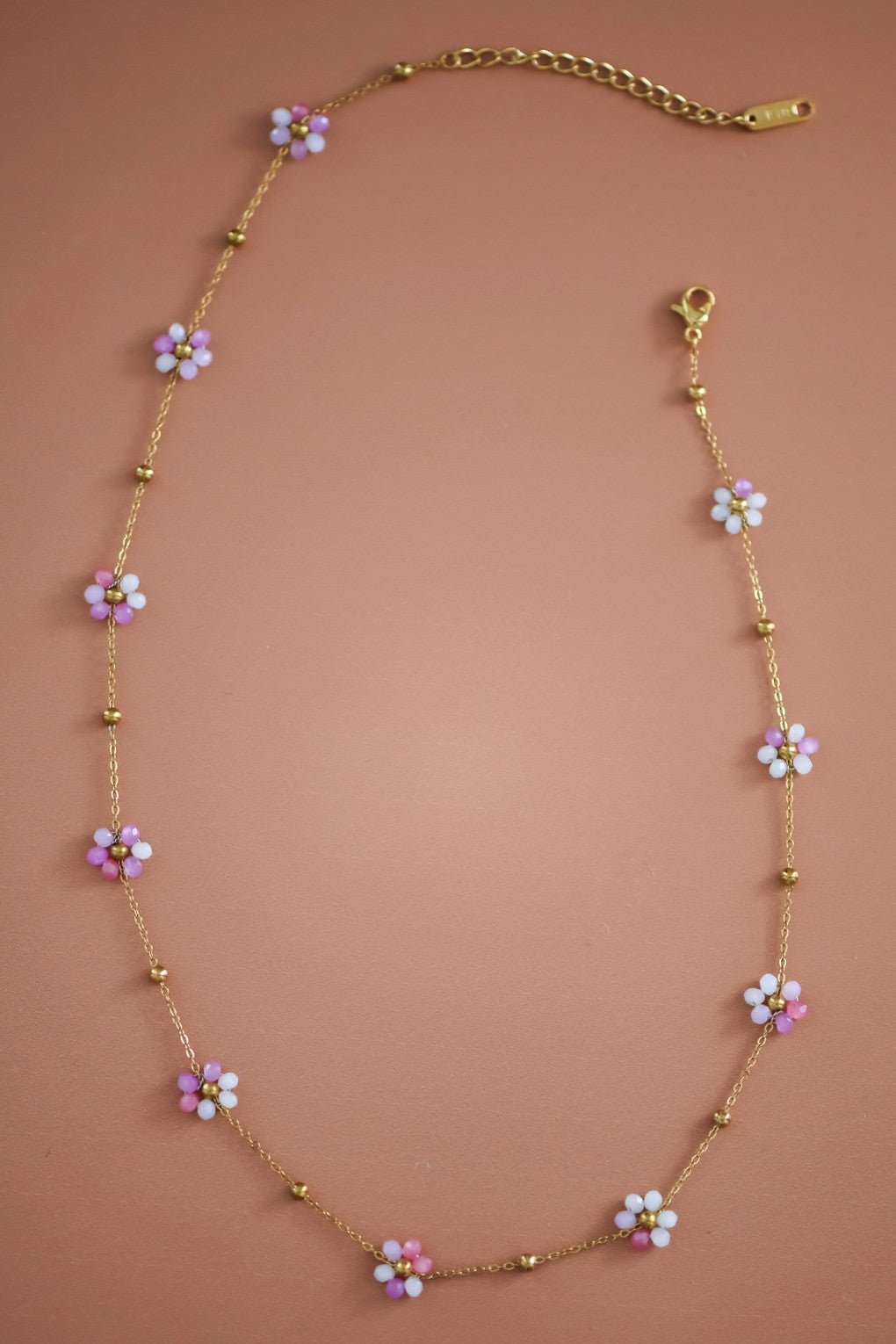 18K Gold Plated Stainless Steel Beaded Flower Necklace.