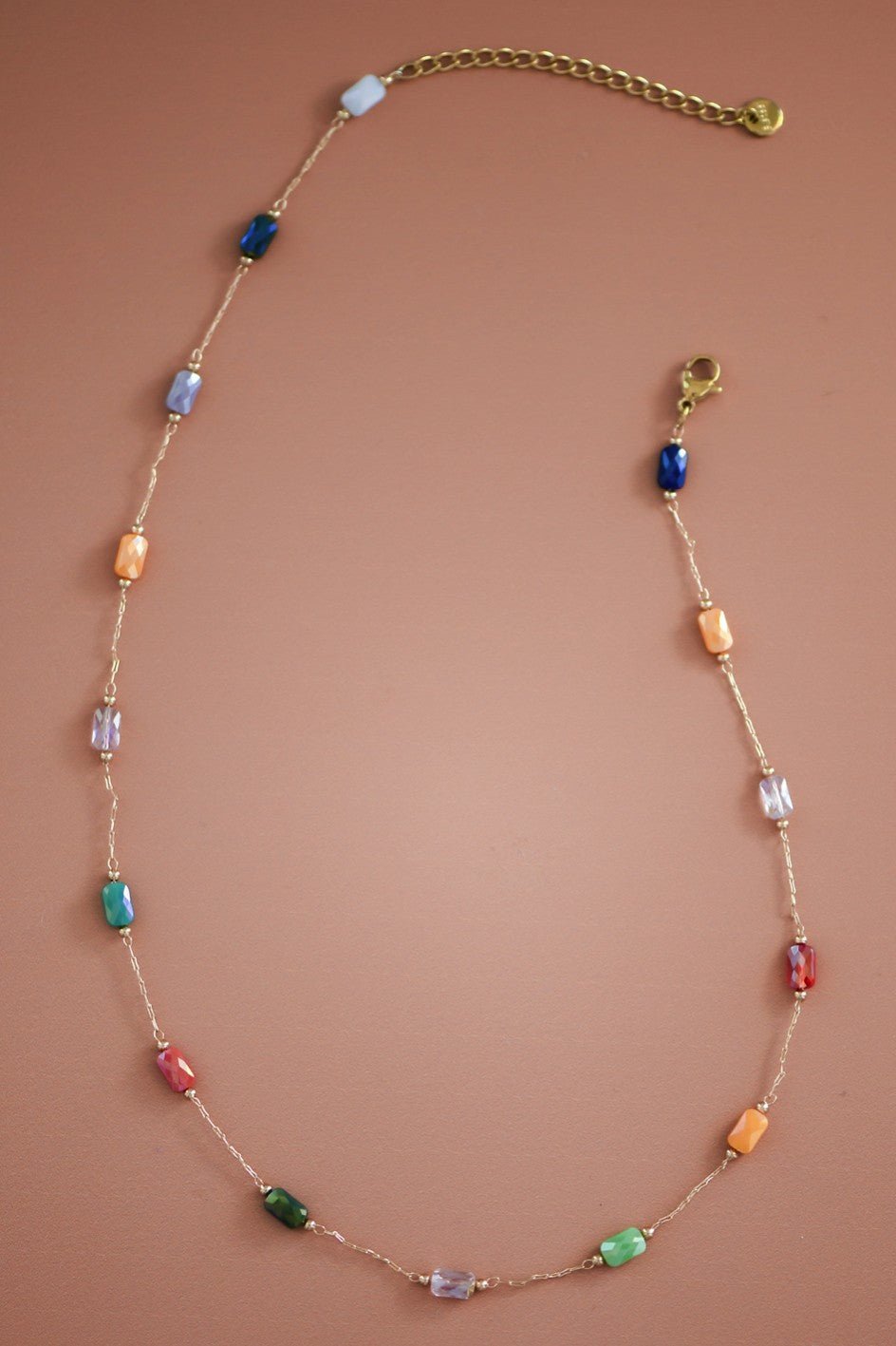 Dainty Chain Necklace | Beaded Chain Necklace | Multicolored Crystal Necklace | Glass Crystal Beaded Necklace | Real Gold Dipped Necklace | Real Gold Plated Necklace | Waterproof & Sweatproof Necklace | Layering Necklace | Simple Delicate Gold Necklace | Spring Summer Necklace