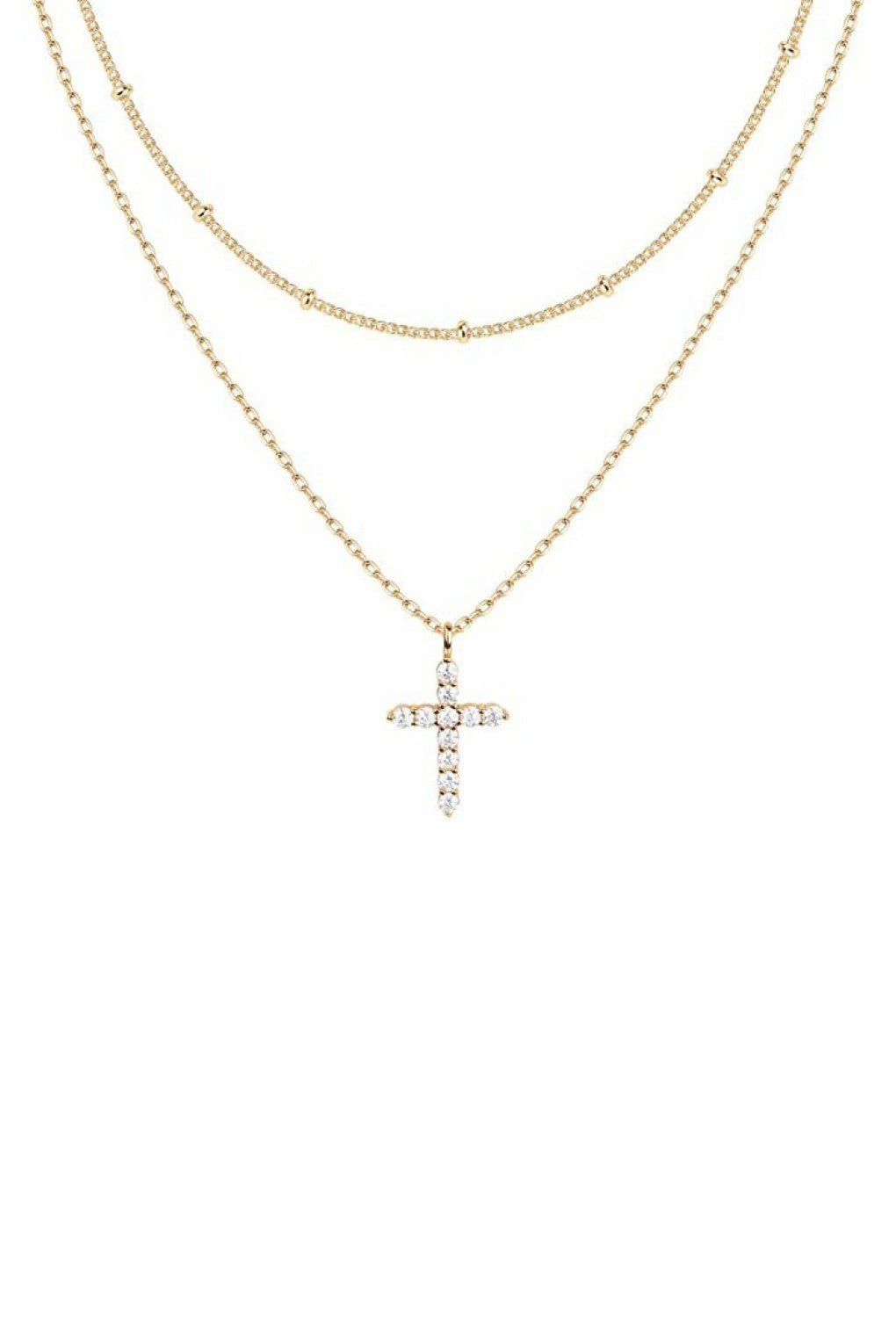 Dainty 18K Gold Plated Stainless Steel Chain Layered Cross Necklace.