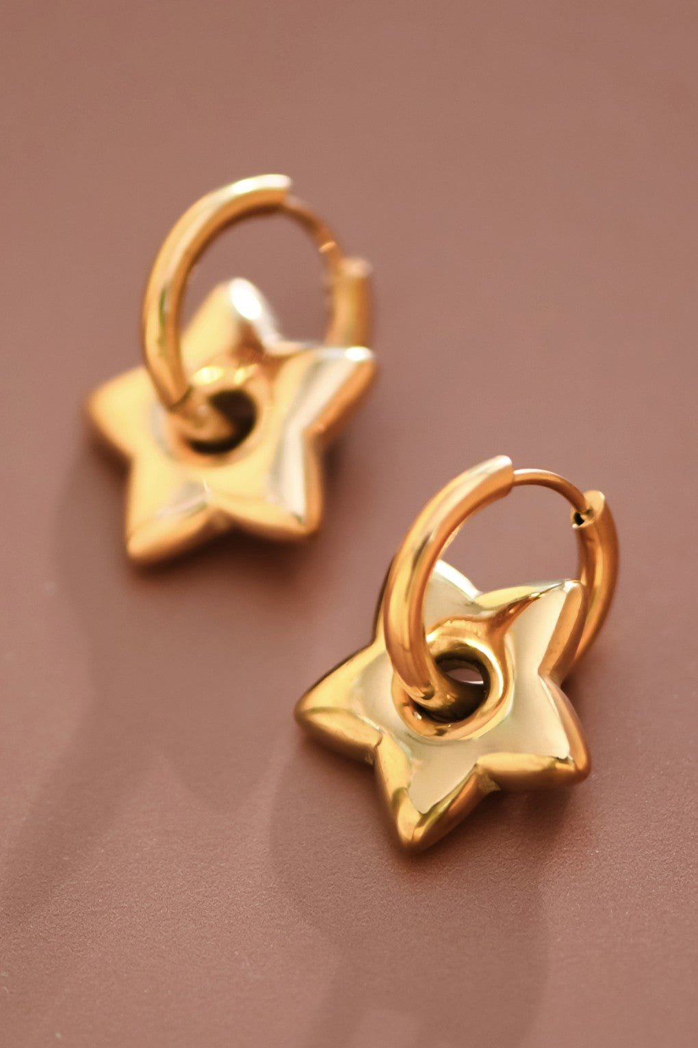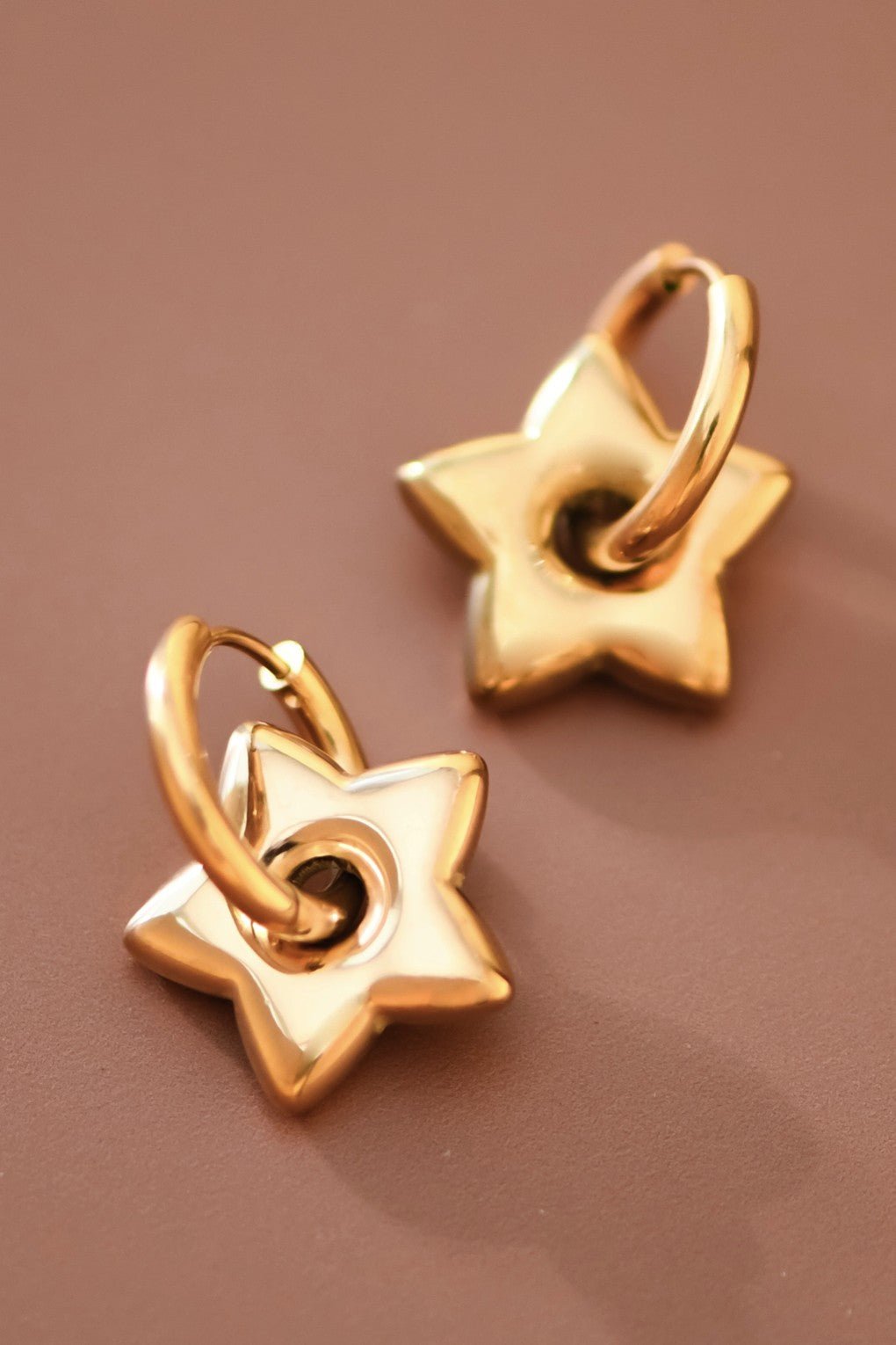 Star Hoops | Simple Gold Earrings | Waterproof & Sweatproof Jewelry | Simple Lightweight Earrings | Minimalist Earrings | Real Gold Dipped Earrings | Real Gold Plated Earrings | Stainless Steel Metal Earrings