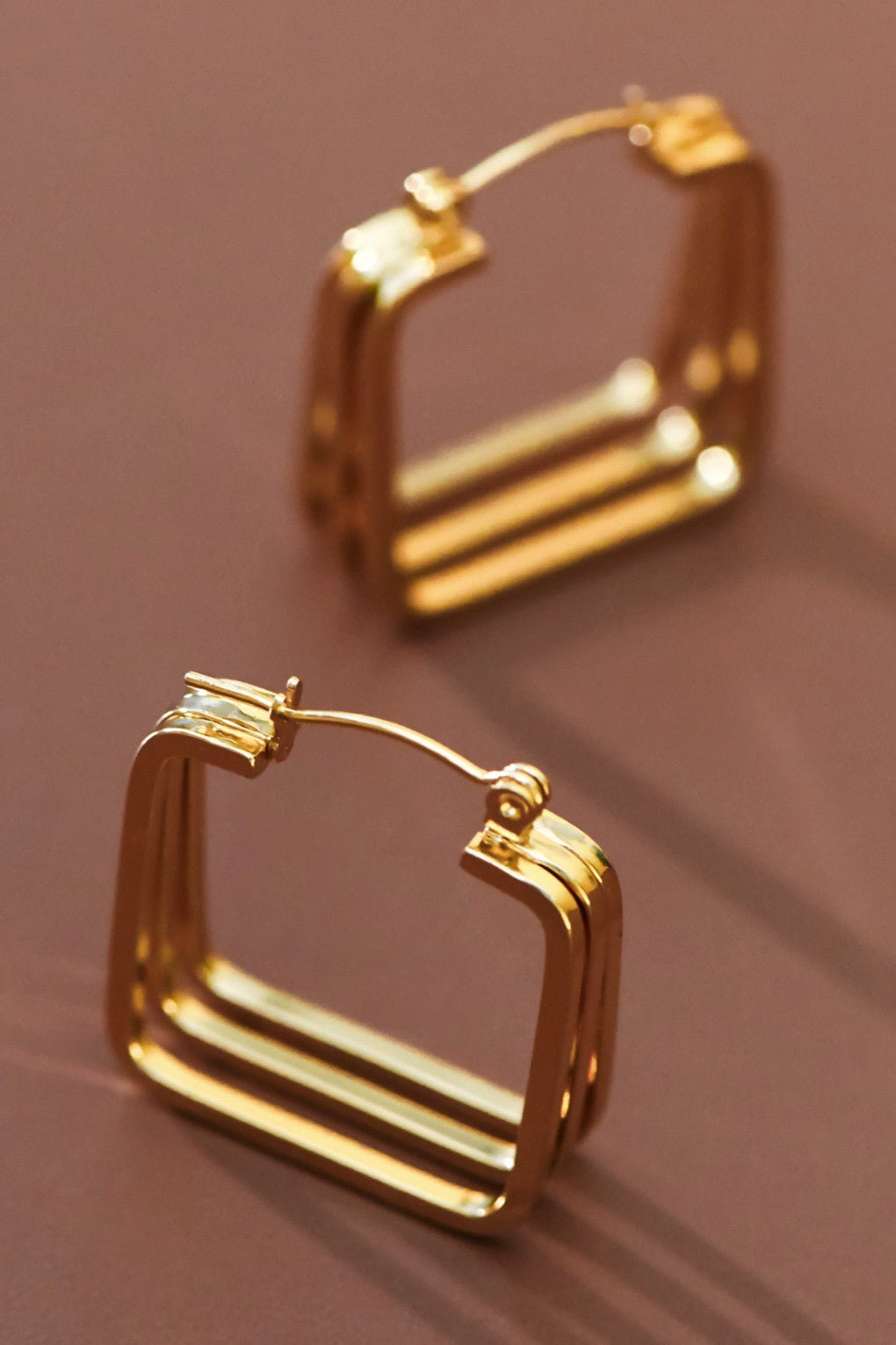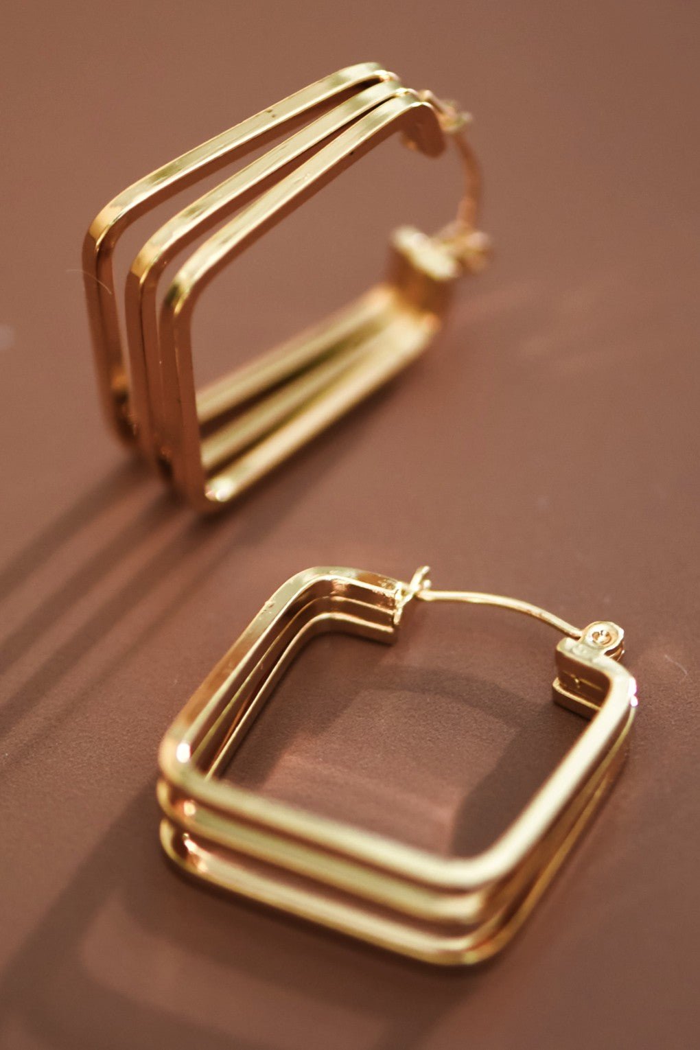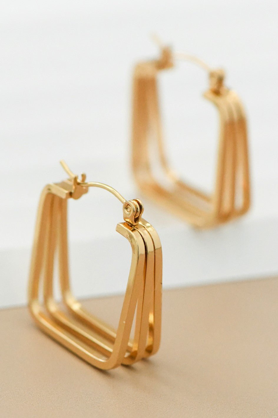 18K Gold Dipped Stainless Steel Square Hoop Earrings.