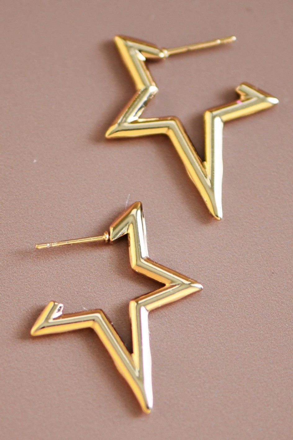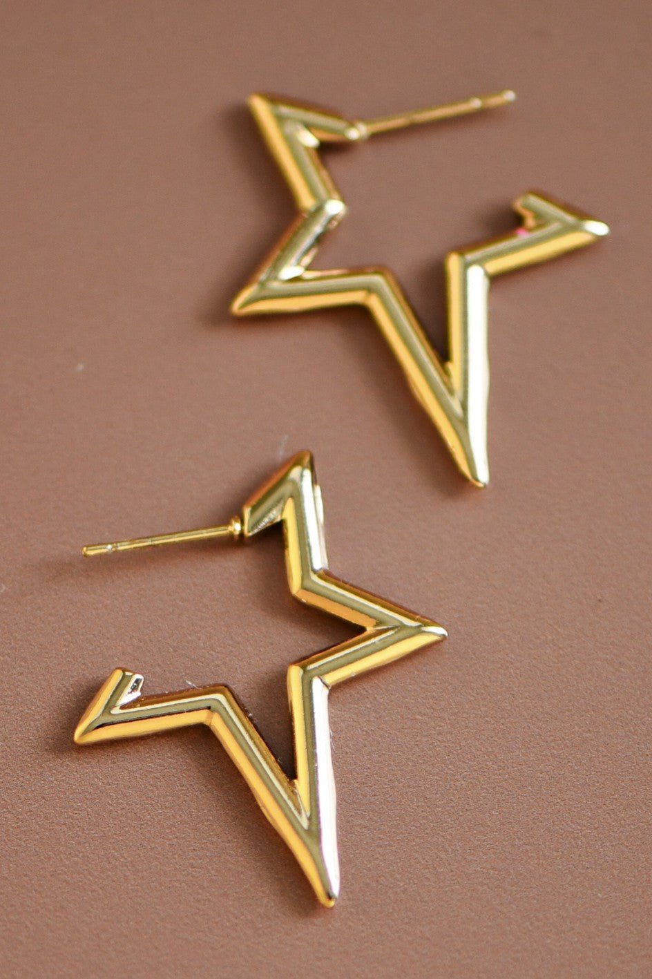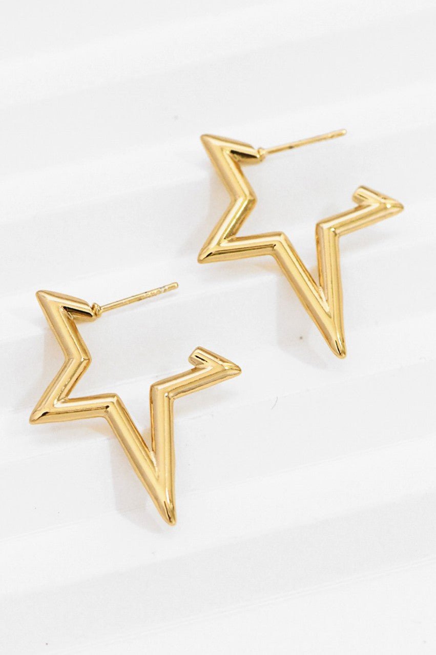 18K Gold Dipped Stainless Steel Star Hoop Earrings.