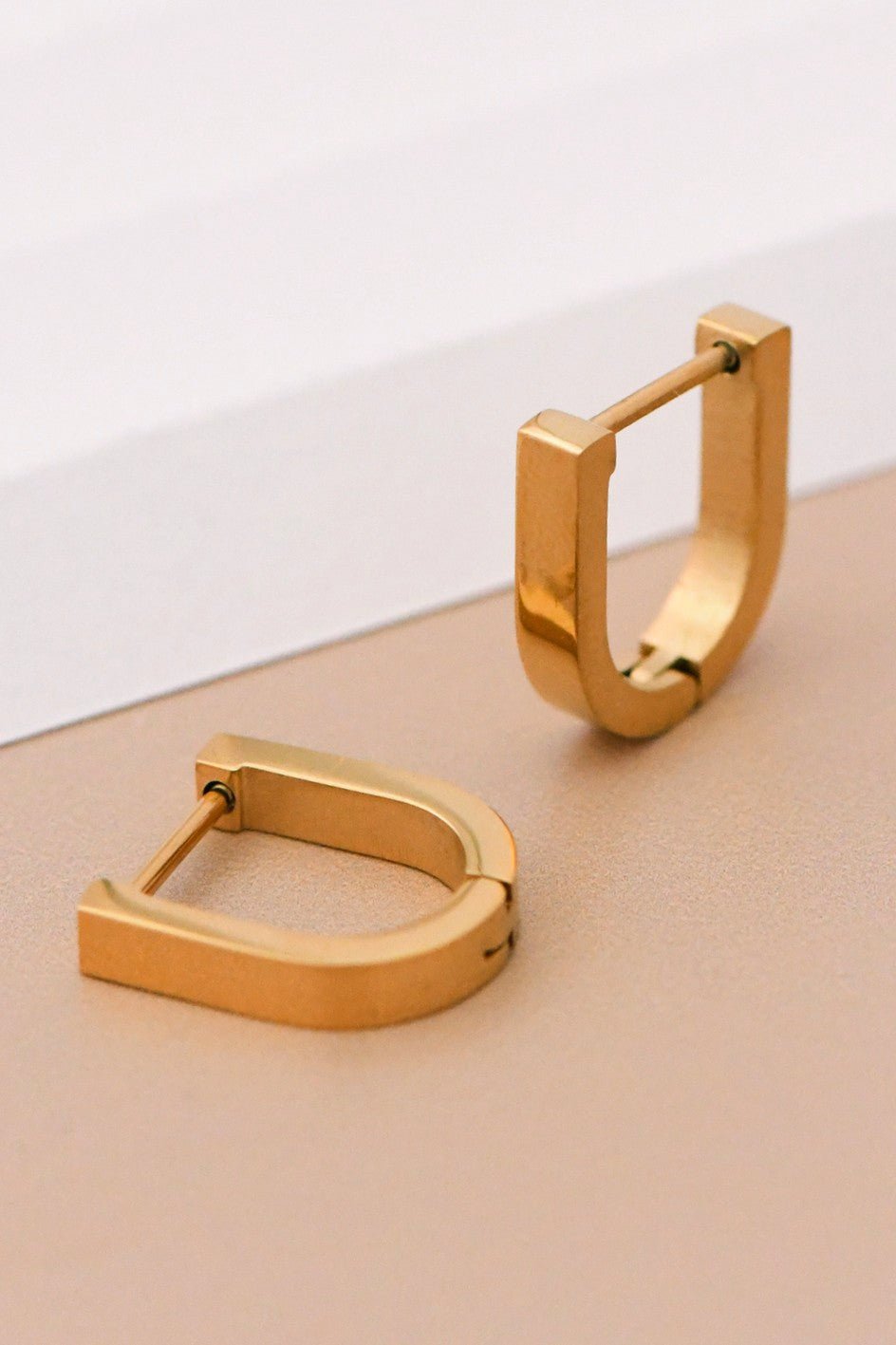 Gold Plated Stainless Steel Small Carabiner Hoop Earrings.
