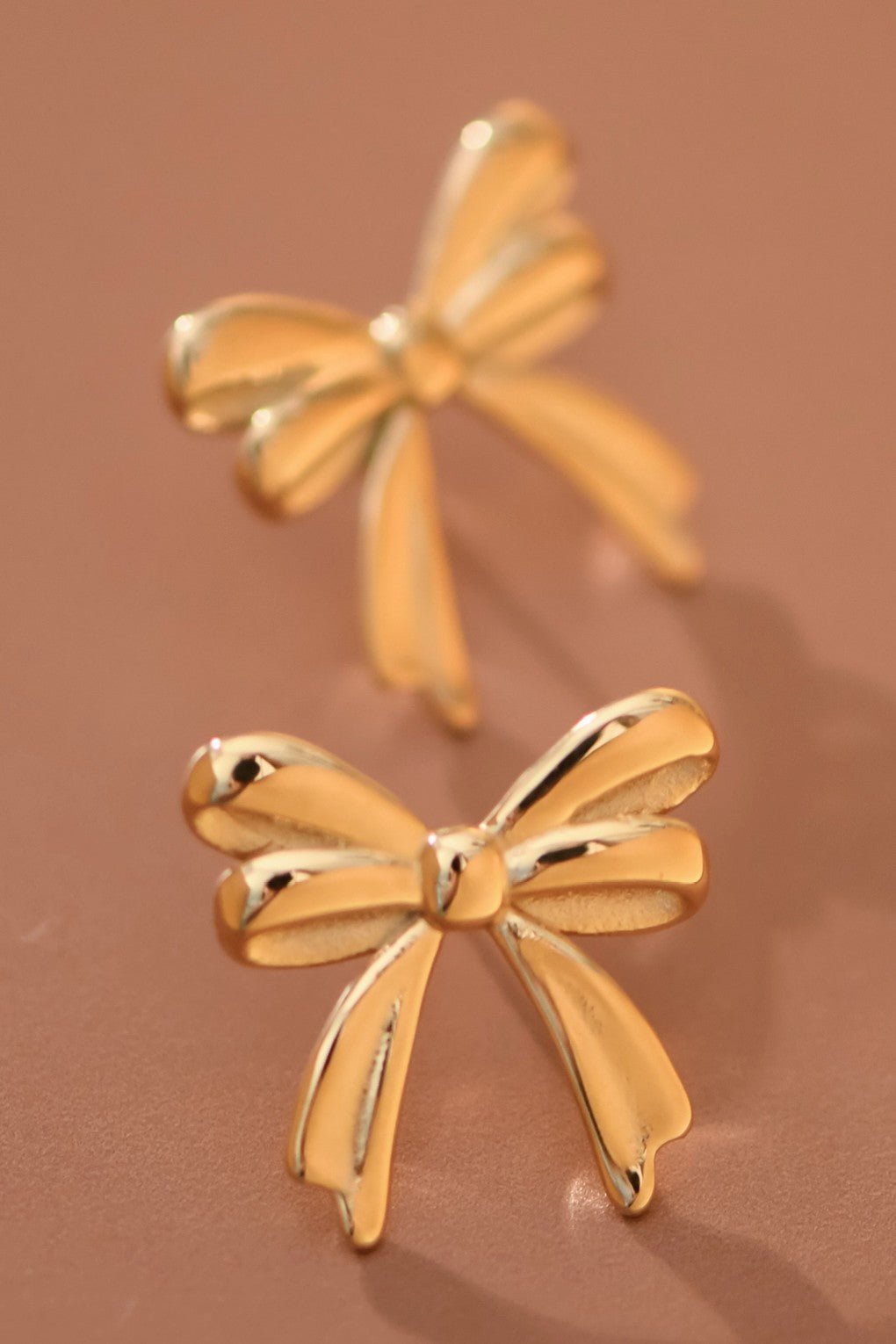 18K Gold Plated Stainless Steel Bow Stud Earrings.