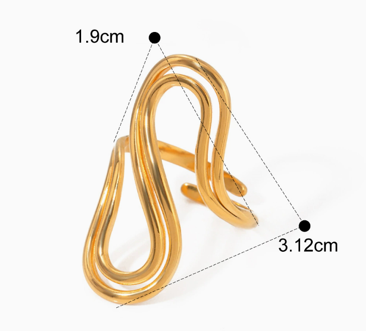 18K Gold Plated Stainless Steel Sculptural Wave Ring.