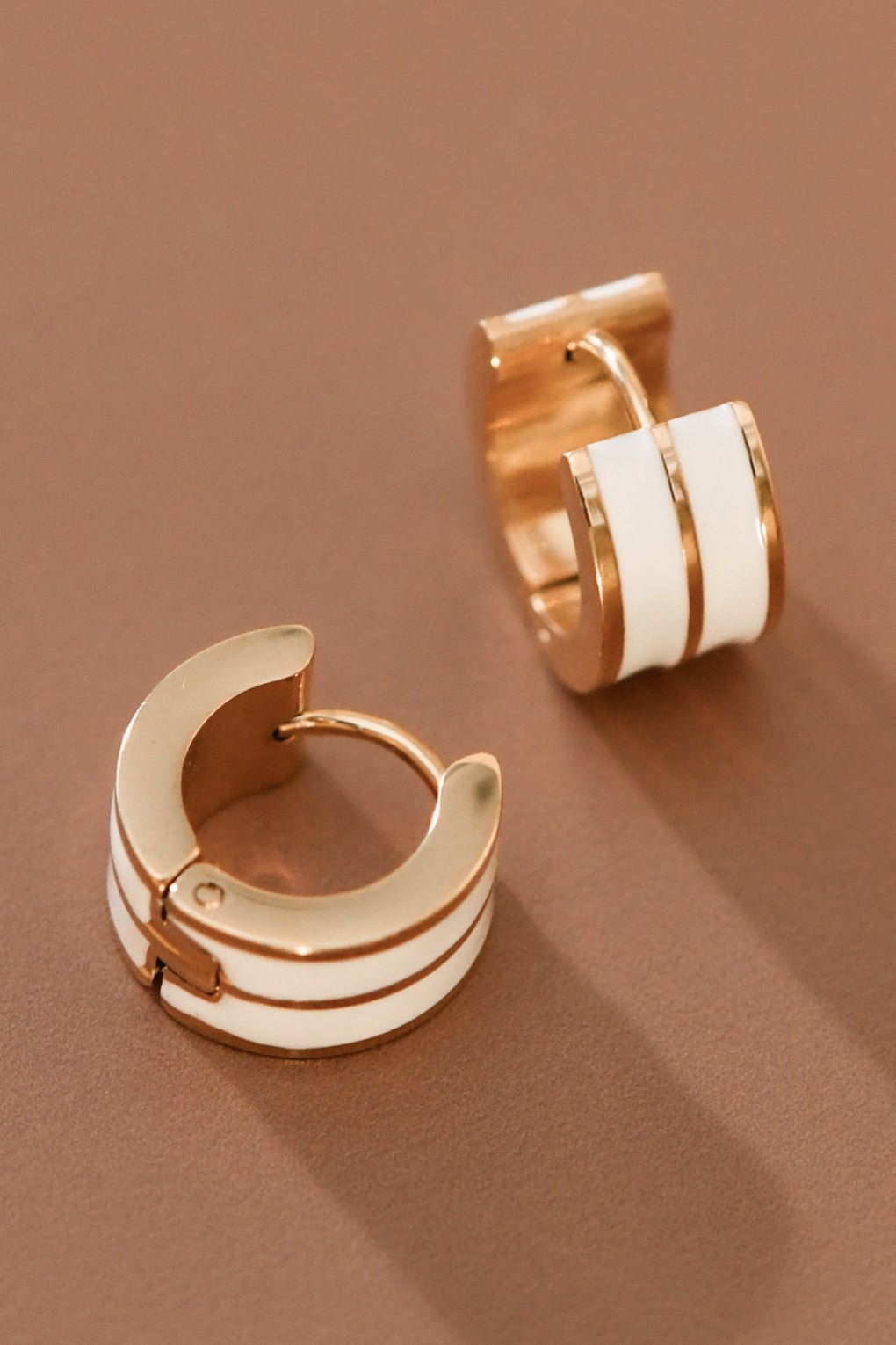 White Enamel Hoop Earrings | Gold Plated Hoop Earrings | Stainless Steel Earrings | Enamel Earrings | Hoop Earrings | Waterproof & Sweatproof Jewelry | Metal Earrings | Tarnish Resistant Earrings | Everyday Jewelry