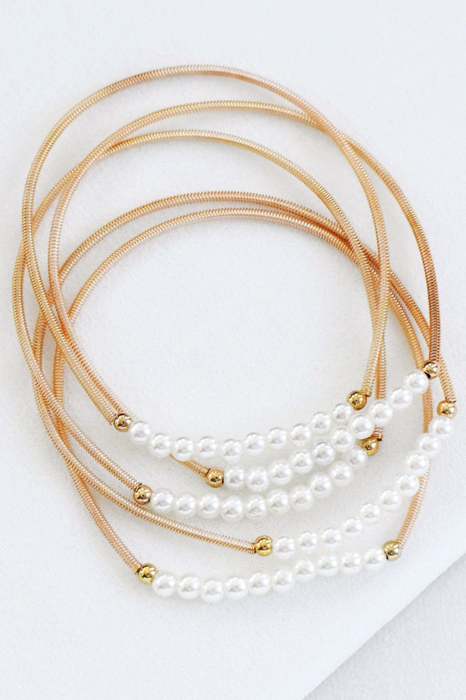 Boho Pearl Bracelet Set | Guitar String Bracelets | Spring Coil Bracelets | Stackable Bracelets | Layered Bracelet Stack | Beaded Bracelet Set | Stretchy Bracelet Set | Crystal Bead Bracelets