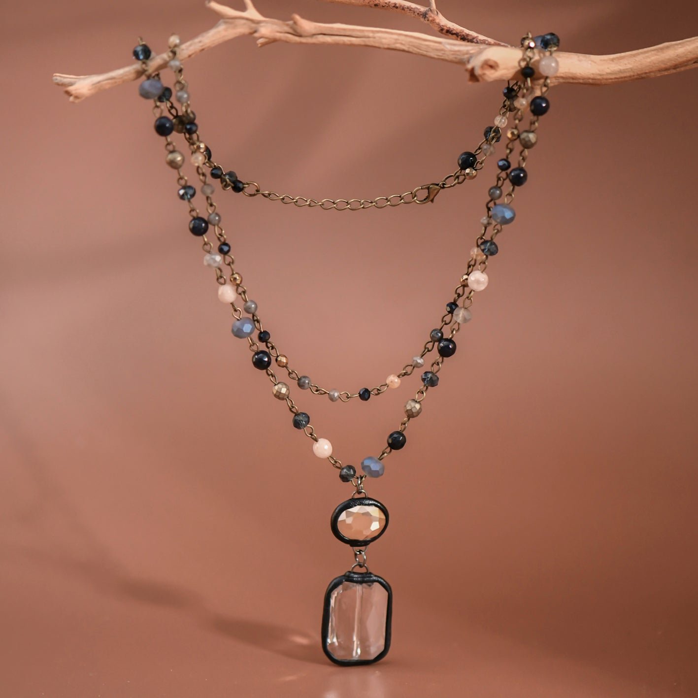 Double Layered Mixed Glass Bead and Stone Necklace.