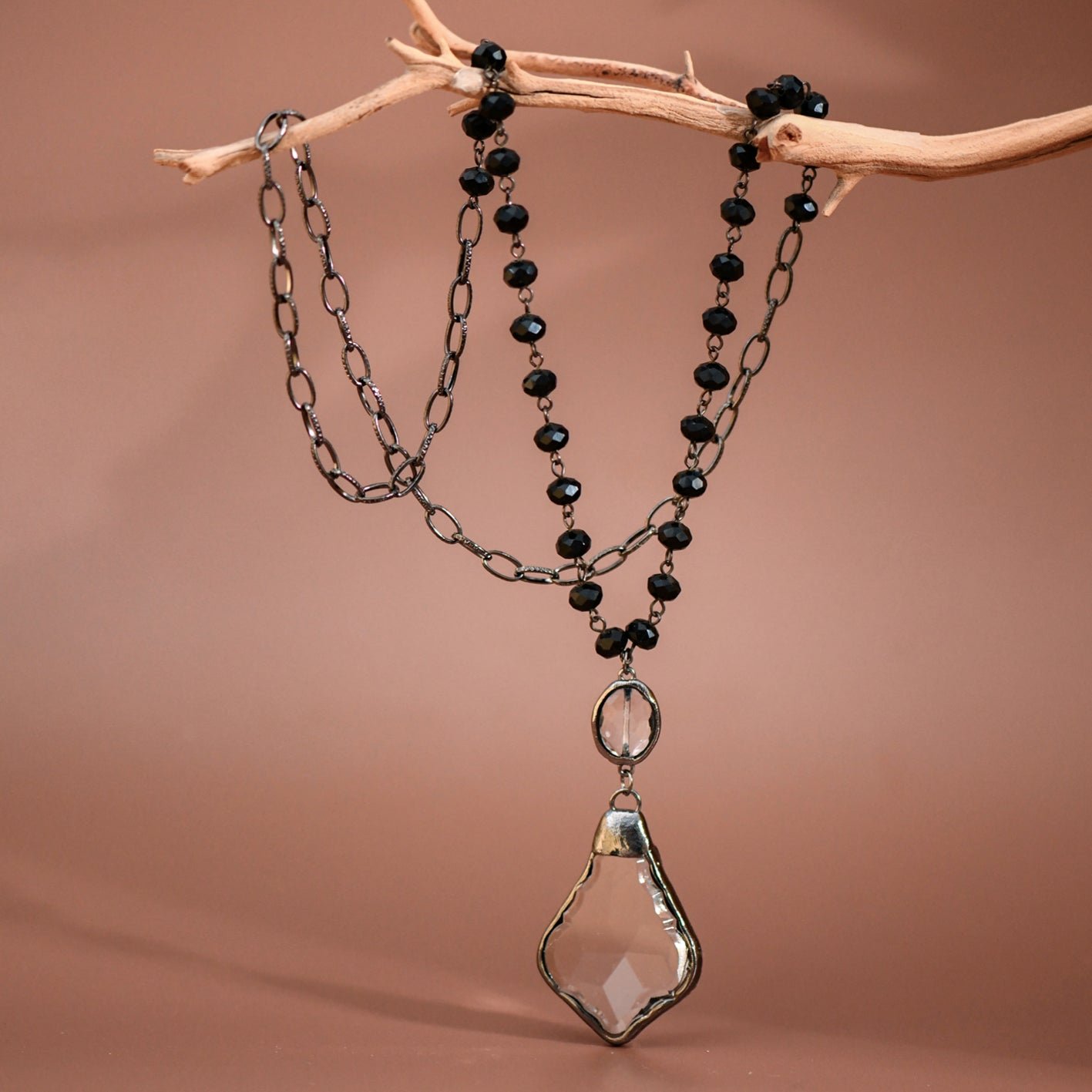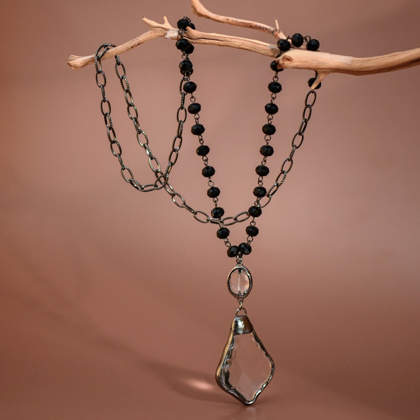 Glass Crystal Necklace | Statement Necklace | Chunky Necklace | Long Necklace | Boho Necklace | Bead Necklace | Beaded Necklace | Large Crystal Pendant Necklace
