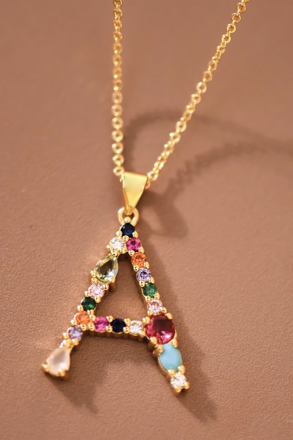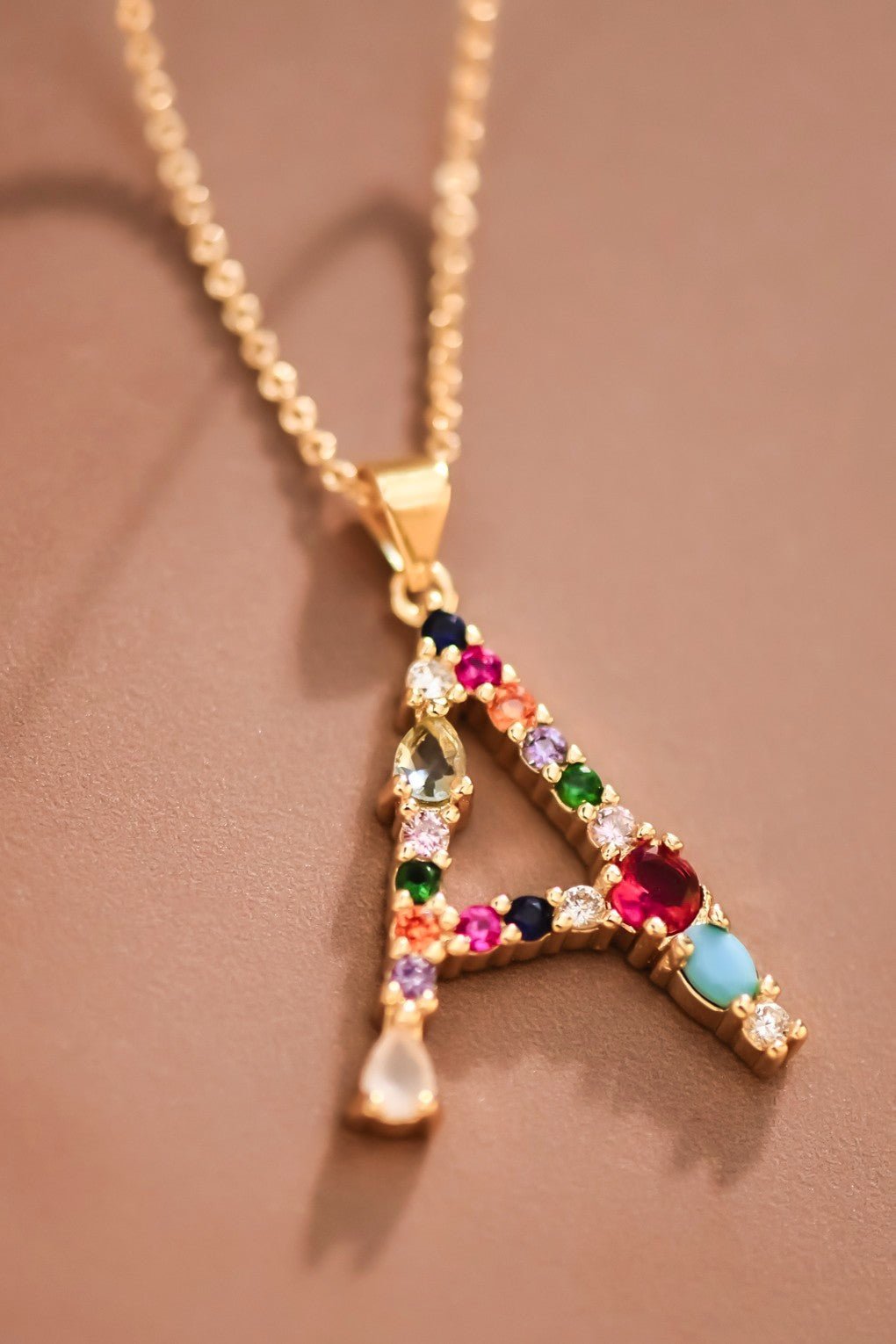 Multicolored Zircon Crystal Initial Necklace | Colorful Letter Necklace | Initial Pendant Necklace | Letter Charm Necklace | Name Necklace | Monogram Necklace | Gold Dipped Necklace | Gold Plated Necklace