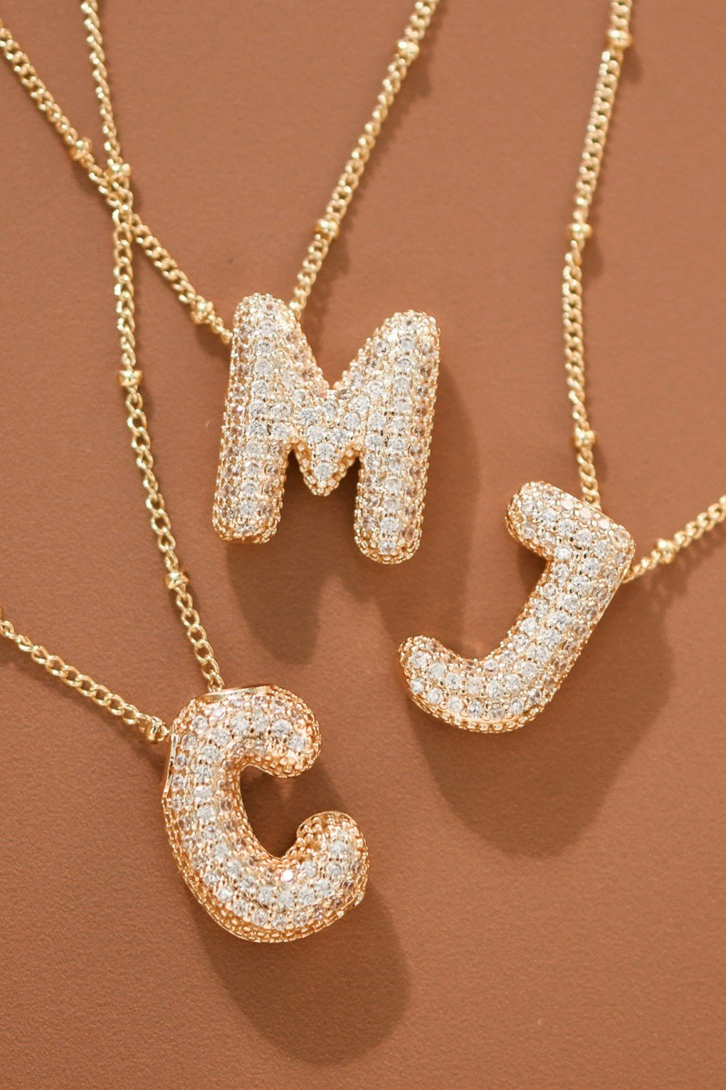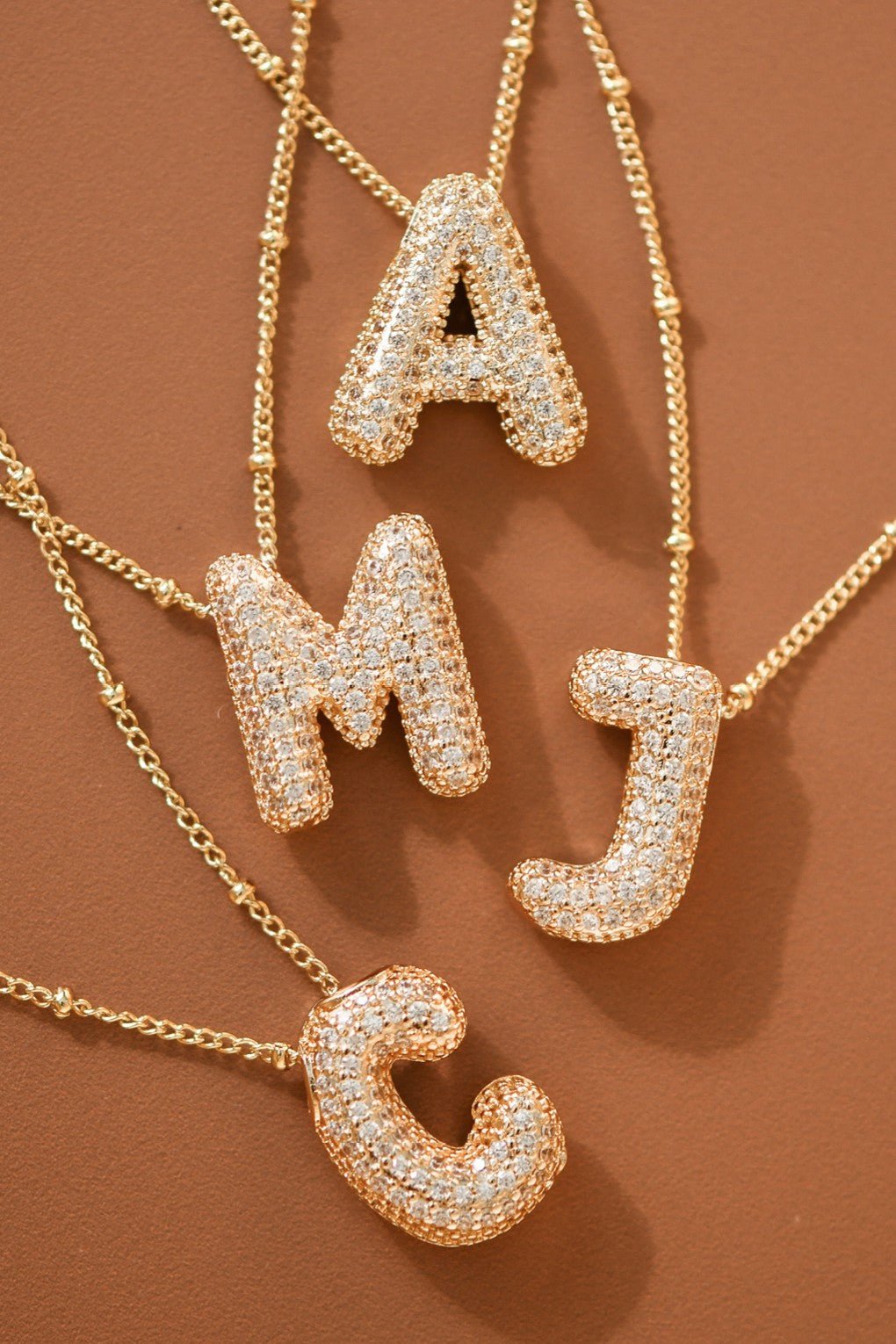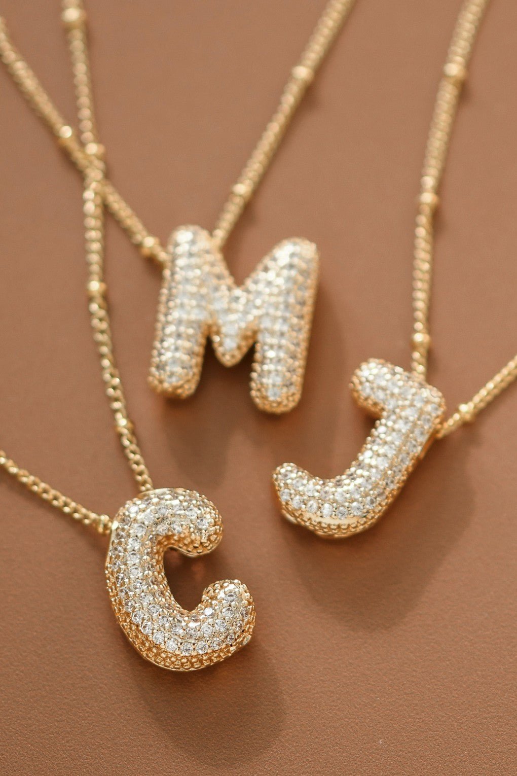 Bubble Letter Necklace | Balloon Letter Necklace| Letter Charm Necklace | Initial Pendant Necklace | Name Necklace | Monogram Necklace | Simple Gold Necklace