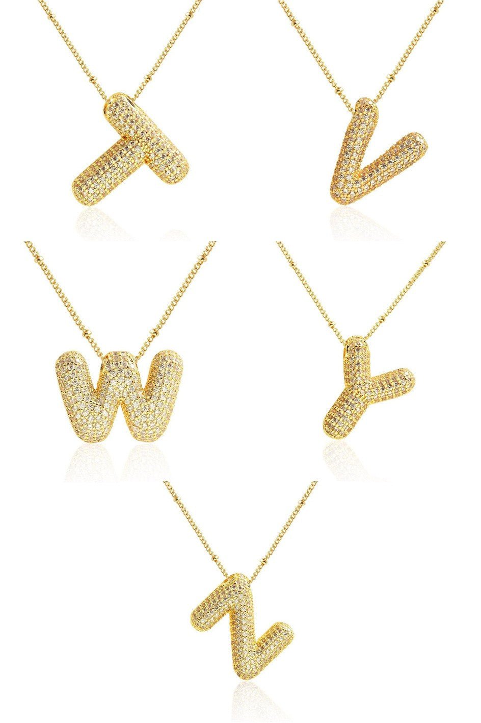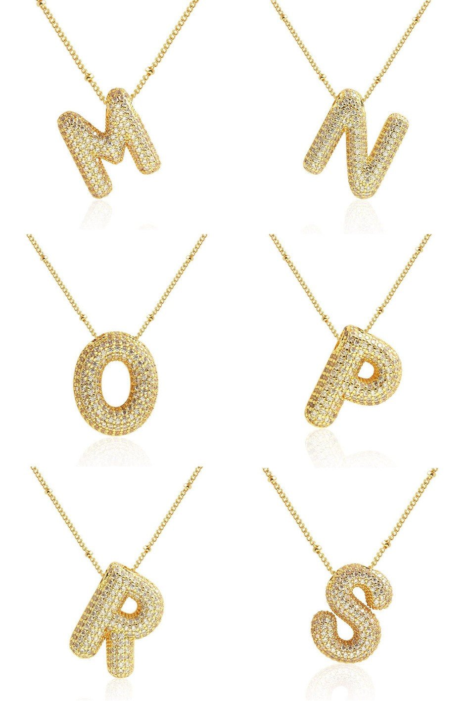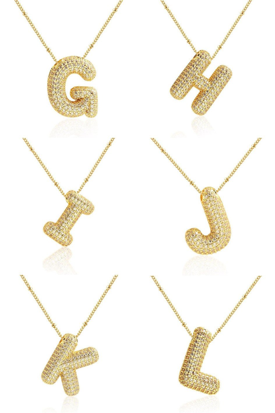Bubble Letter Necklace | Balloon Letter Necklace| Letter Charm Necklace | Initial Pendant Necklace | Name Necklace | Monogram Necklace | Simple Gold Necklace
