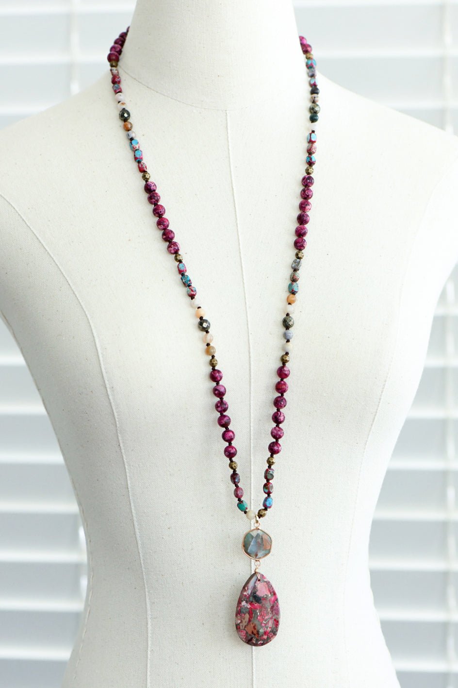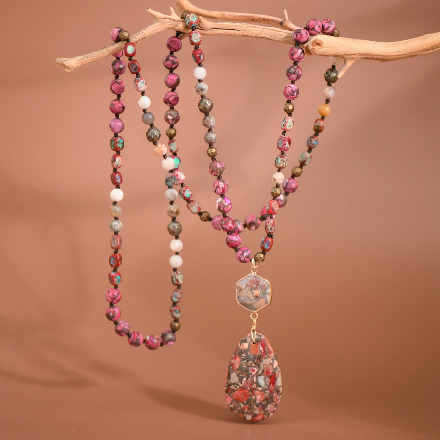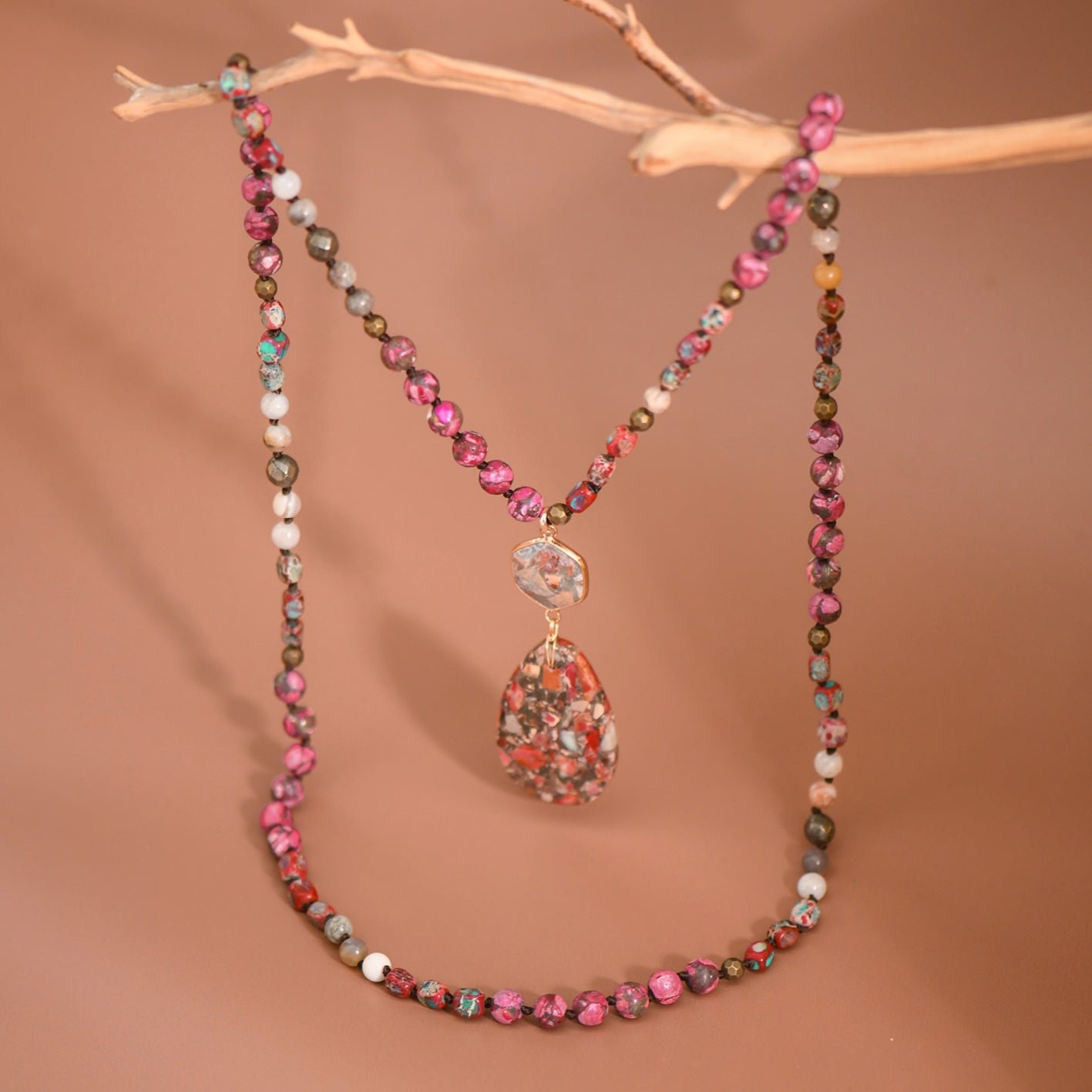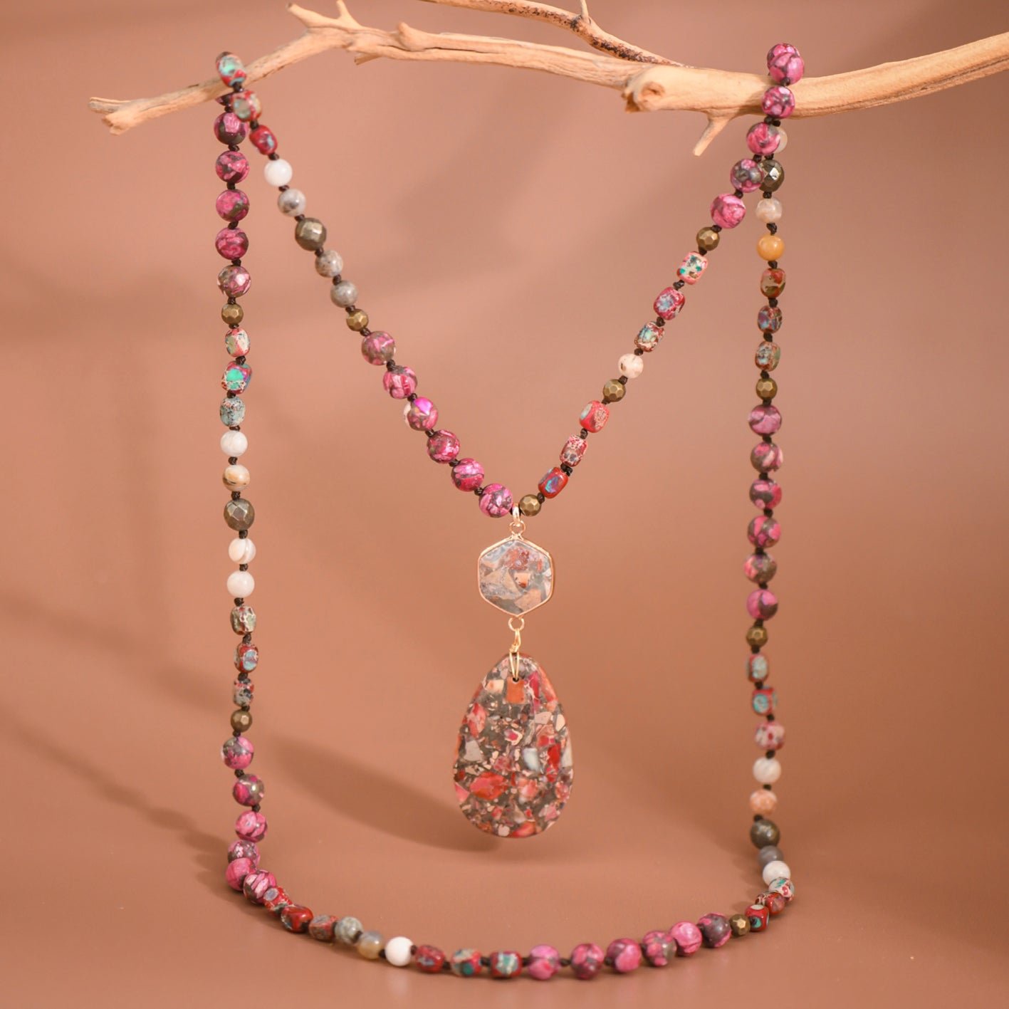 Sea Sediment Imperial Jasper Necklace | Healing Crystal Necklace | Statement Necklace | Chunky Necklace | Protection Necklace | Long Necklace | Multi Gemstone Necklace | Boho Necklace | Natural Semi Precious Stone Necklace | Real Stone Necklace | Knotted Bead Necklace | Beaded Necklace | Large Crystal Pendant Necklace