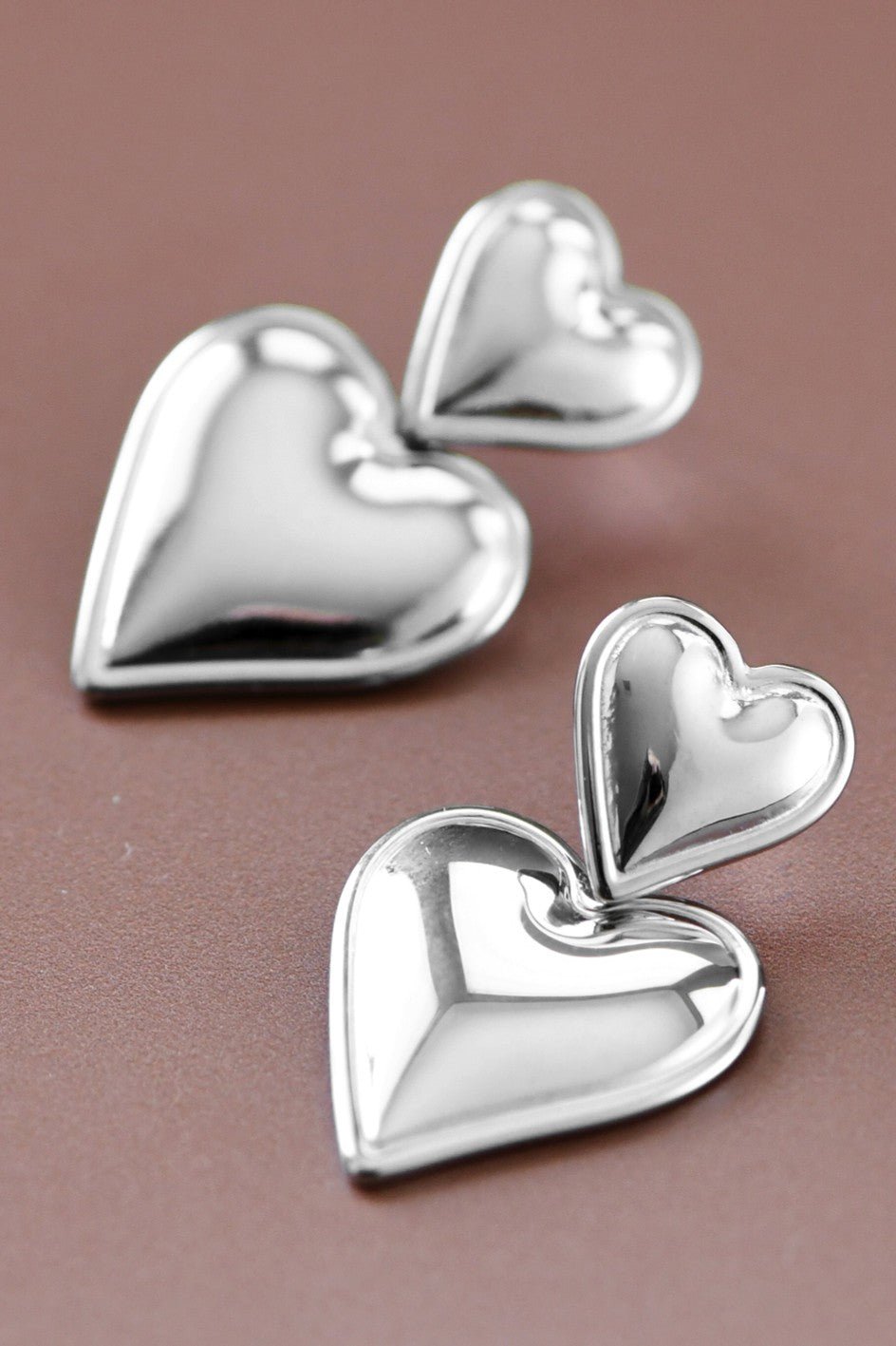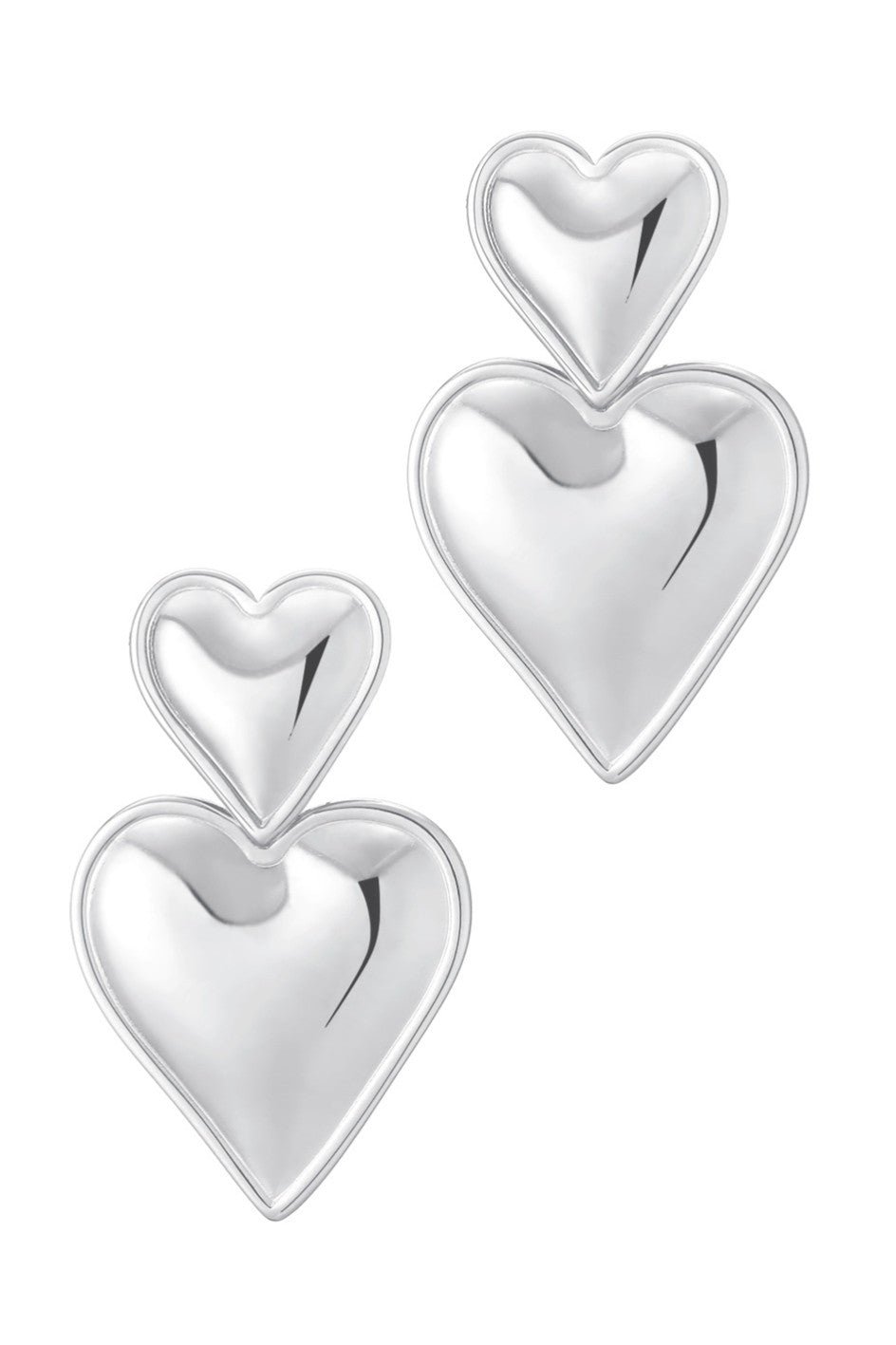 Waterproof & Sweatproof Jewelry | Double Heart Drop Earrings | Silver Earrings | Minimalist Post Earrings | Simple Silver Earrings