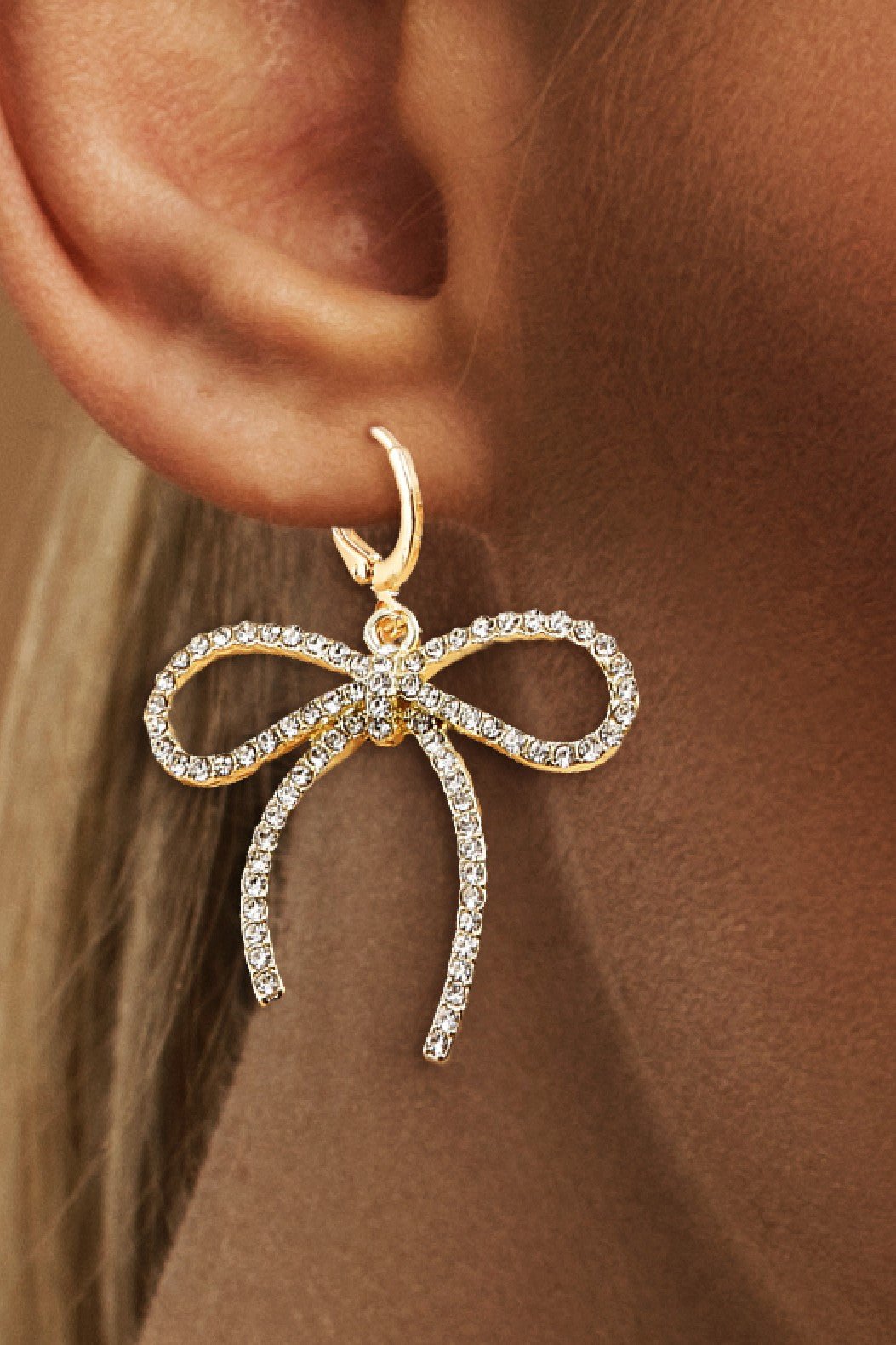 Gold Plated Bow Earrings | Bowknot Earrings | Bow Tie Earrings | Cute & Trendy Bow Earrings | Ribbon Bow Earrings | Metal Bow Earrings | Pave Bow Earrings