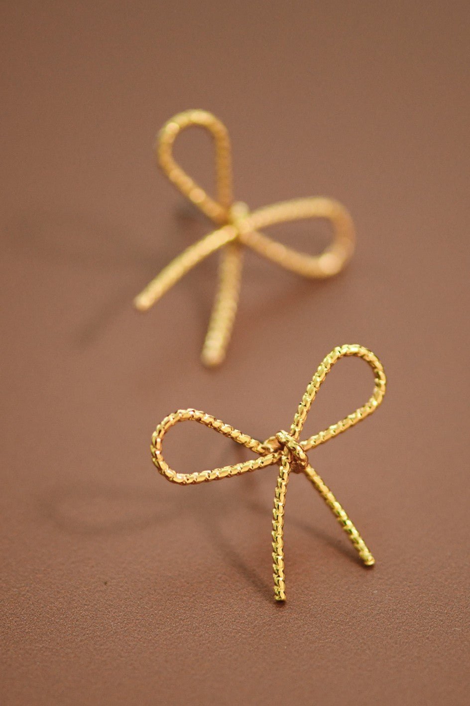 Trendy Gold Bow Knot Stud Earrings, Bow Rope Studs.