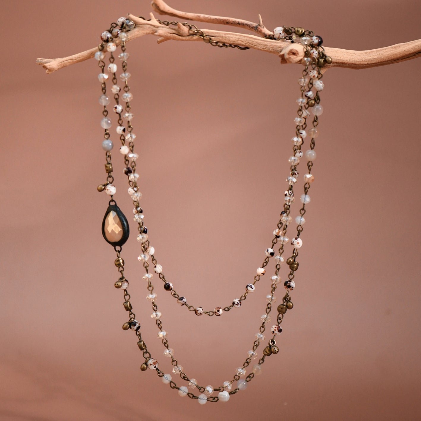 Natural Stone Beaded Necklace | Statement Necklace | Crystal Necklace | Boho Necklace | Layering Necklace | Layered Necklace | Multi Strand Necklace | Multi Layer Necklace | Multi Layer Necklace | Bohemian Necklace | Multicolored Jewelry | Beadwork Necklace | Mixed Media Necklace | Neutral Necklace