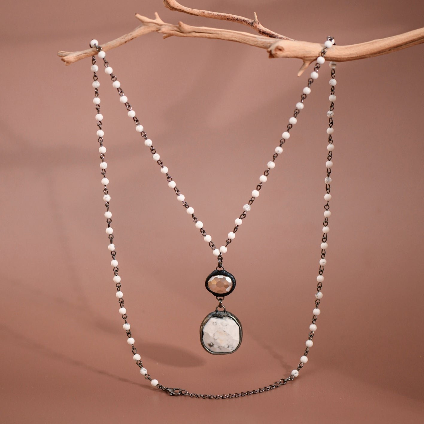 White Howlite Stone Necklace | Rosary Chain Necklace | Healing Crystal Necklace | Delicate Long Necklace | Protection Necklace | Multi Gemstone Necklace | Boho Necklace | Natural Semi Precious Stone Necklace | Real Stone Necklace | Beaded Chain Necklace | Beaded Necklace | Crystal Pendant Necklace