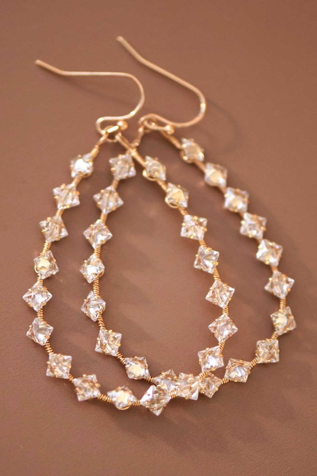 Clear Zircon Crystal Earrings | Teardrop Dangle Earrings | Wire Beaded Earrings | Beaded Crystal Teardrop Earrings | Beaded Teardrop Wire Drop Earrings | Stone Beaded Teardrop Wire Earrings | Beaded Wire Wrapped Earrings